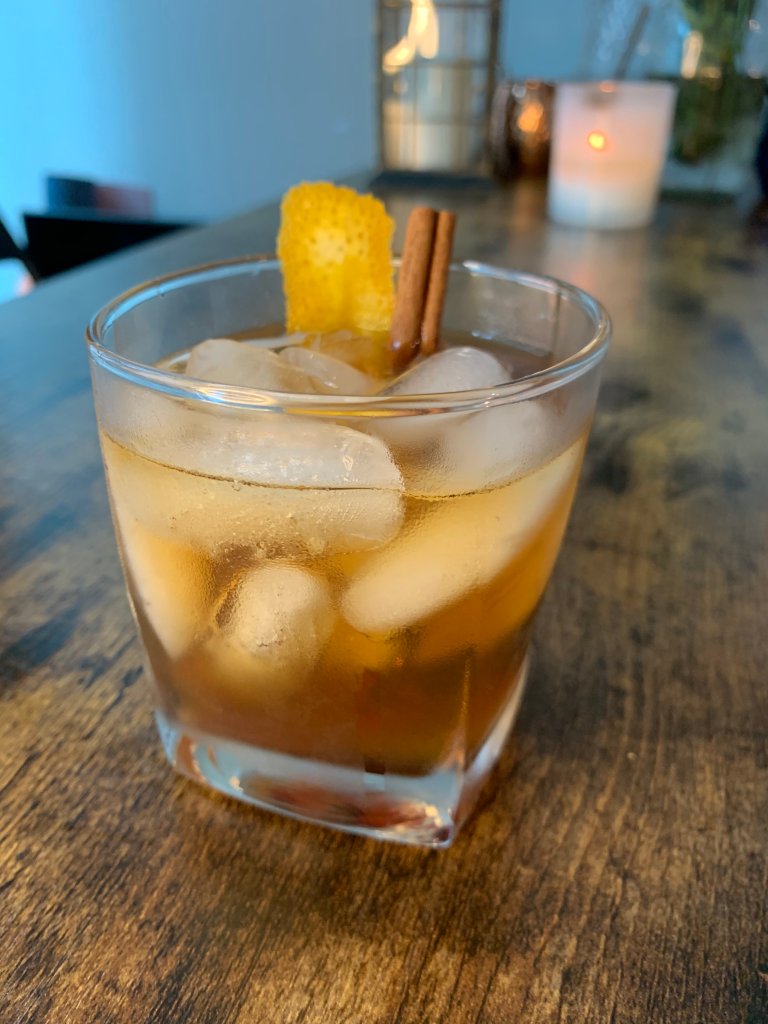 Ah, the Old Fashioned. A simple cocktail that’s been around since the late 1800s, made up mostly of bourbon but supported by hints of sugar, fruit and bitters. It’s an essential classic in mixology and, personally, one of my favorite cocktails out there. For this drink, I wanted to add a bit of a twist to an already established formula, similarly to what Knives Out does to the murder mystery genre.