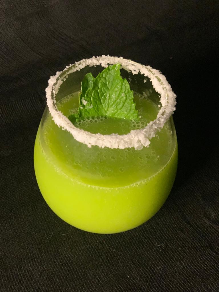 - Pour into prepared glass and garnish with mint leaves.