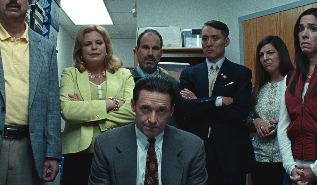 Bad Education is the dramatic retelling of said event, painted with that serious blue sheen sometimes found in crime dramas. You aren’t entirely sure what you’re getting into at first. From the beginning we’re show the monotonous day-to-day activities of a small, unassuming high school. At the helm of this ship is Frank Tassone, the superintendent of the school district, played by Hugh Jackman. He obviously loves his job, and is well liked by students and parents alike, with many of his successes directly enhancing the district’s booming economy. He’s a friendly, outgoing, understanding, and well-meaning servant of the students. Also he flies to Vegas and sleeps with a former student of his.