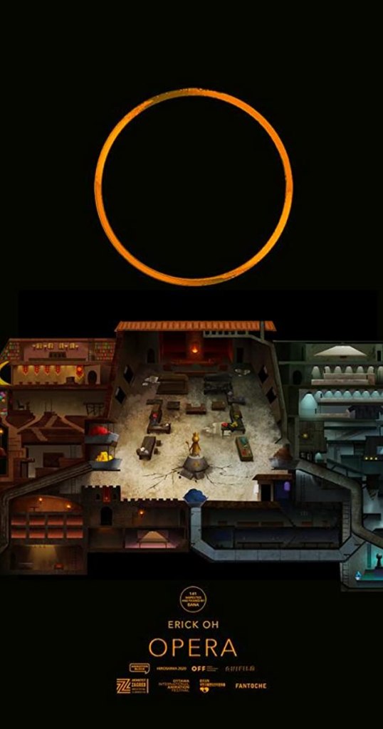 Essentially an eye-puzzle in motion, Opera is a striking, haunting interpretation of how a flawed economic system affects, or barely affects, the differing societal classes. There’s so much to analyze and discover in the short, though it does give your eyes time to wander and attempt to connect all the moving parts together. While not exactly offering any new insight into what can be done about these issues, the short still remains a piece of artistic dystopian beauty.