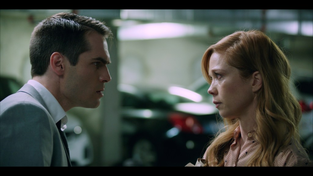 If you’ve seen Cumming’s performances before, you know he excels at embodying neurotic, manic characters with pent up rage and usually a vice that comes back to bite them. There isn’t much of a difference in Jordan, except maybe that he’s not a cop like Cumming’s last two lead performances (although he does impersonate one). Yet he’s a complex character that I’m sure many can find pieces of themselves in. His ego tends to fool even himself, presenting himself as a hot shot agent capable of convincing anyone to sign the dotted line. His beliefs about himself are constantly challenged which only increases his outward anger towards the people around him, such as when a big name client belittles and emasculates him in front of others. More time is spent on his image than perhaps his job, renting a Tesla he claims to own and buying a $10,000 painting to impress a client. His decision to go through with his anonymous affair is another aspect of him that I found interesting; living in his own imagination, believing every woman that looks at him wants it bad. Because of his obviously low self-esteem, he finds this pull of lust and desire too powerful to ignore. “I want you” is a powerful request for many to deny, especially one as two-faced as Jordan. His entire journey is an attempt to save his own skin, not to right the wrongs he committed. It’s a downward spiral that makes him less of a hero and more of a protagonist in the long run, but Cumming’s energy is undeniable magnetic, keeping you invested in the long run whether he wins or not.