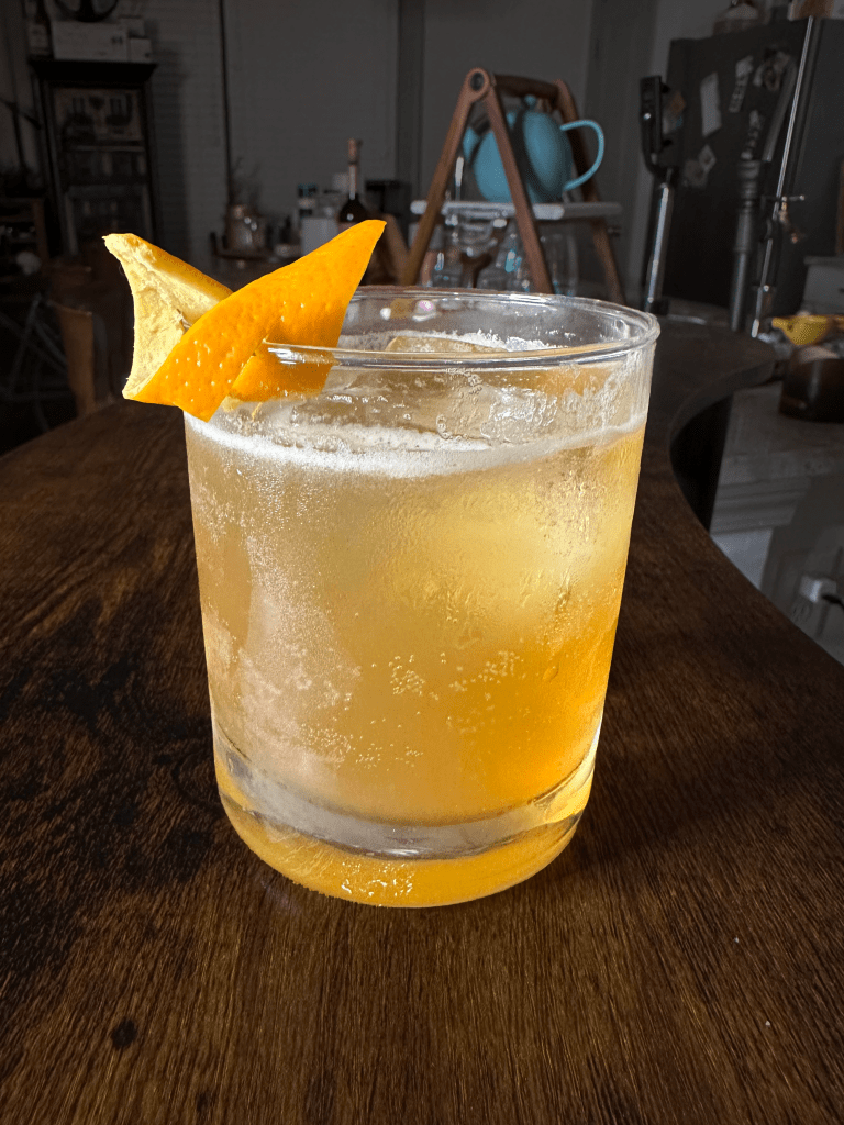 There’s no denying we live in crazy times. Sometimes it’s best to just get away from it all, go off grid, and piss off to a world free of the pains and rules of the modern world. But if you’re bad at starting a fire like me, sometimes you gotta settle for an AirBnB cabin in the woods. And if the apocalypse decides to roll up to your door? Well, you can hunker down with this cozy, woodsy cocktail. I chose ingredients that would be warming and comforting, perfect for watching the world fall apart from your secluded log cabin. Whiskey, maple syrup and bourbon are common combinations I’m taking a step further with the addition of some sparkling apple cider. This cocktail is crisp with subtle sweetness that also manages to warm the body. Included a flamed orange peel also adds a new layer to aromatic nature of the cocktail, truly brining everything together in this familiar yet undeniably tasty concoction.