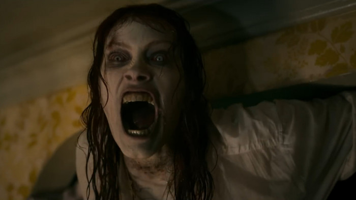 While feeling different from past films thanks to its location and character archetypes, the film never lets you forget its roots. The film plays out how you would expect; characters find a creepy book made of flesh, its incantations get read, people get possessed and all hell breaks loose. There’s even quite a few callbacks to past films, whether it be iconic quotes or repurposed scenes, like instead of having a demon trapped under a cellar door, this one is locked out of the apartment. At times the film feels a bit too reliant on the past, opting for cheeky callbacks rather than fully committing to doing its own things. Little nods and winks are fine, I just think it had a good thing going with its new setting that I wished it would have kept trying to be more unique. There’s also a metric ton of “Chekhov’s gun” type hints towards certain objects coming into play later. Depending on how you feel about this trope you may find yourself less surprised than you’d like when the foreshadowing is this obvious, but it can still be a bit of fun.