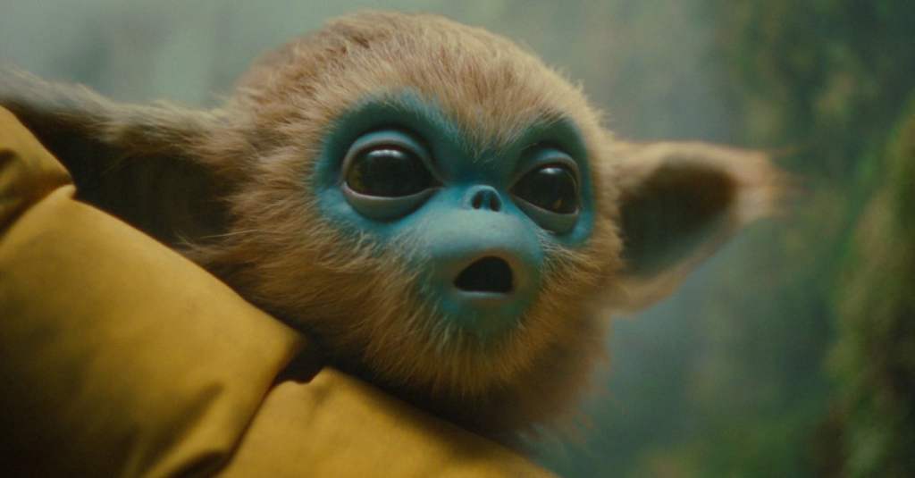 And let’s talk about those weird little apes, because they are certainly the star of the show. If you thought Grogu was something to behold, well, he looks like a sock puppet compared to what the team has done here. Through a mix of animatronics, full body suits and puppets, the Ochi have been given an undeniable sense of realism to them. From full body movements to minor face movements, these are some of the most impressive examples of physical creature creations I’ve seen in a hot minute. Especially with the baby Ochi, who we get to spend a lot of time gawking over. He was apparently controlled by a total of seven people at once to nail the subtle, gentle movements of the creature; and I have to say, they really hit it out of the park. Yeah, it can look a bit hokey at times, especially when the creature is supposed to be moving fast, but it’s too charming for me to care. Even with all the advancements we’ve seen in motion capture and digital rendering, I think I still prefer when something is actually there on set, interacting with the actors. Truthfully, it makes a world of difference.